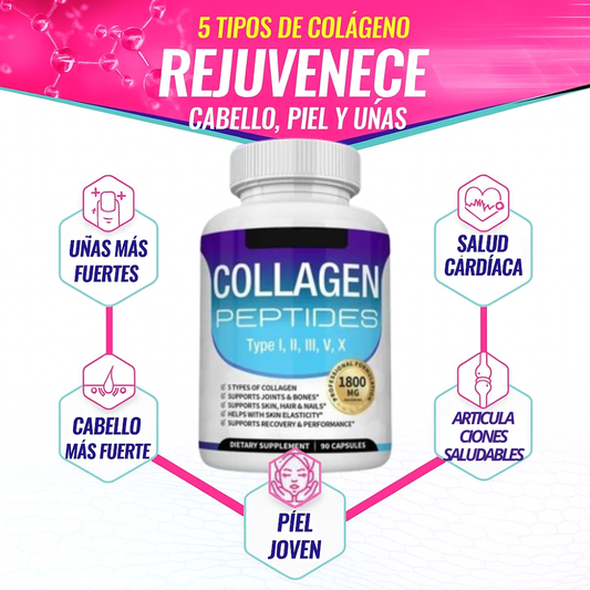 Colageno Peptides, Type I, II, III, V, X - 90 capsulas, Toplux Nutrition